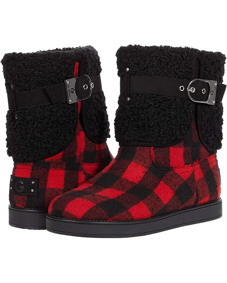 - Featuring faux-fur trim, keep those toes warm and stylish wearing the textile GBG Los Angeles Aussie pull-on boot with an adjustable buckle strap.